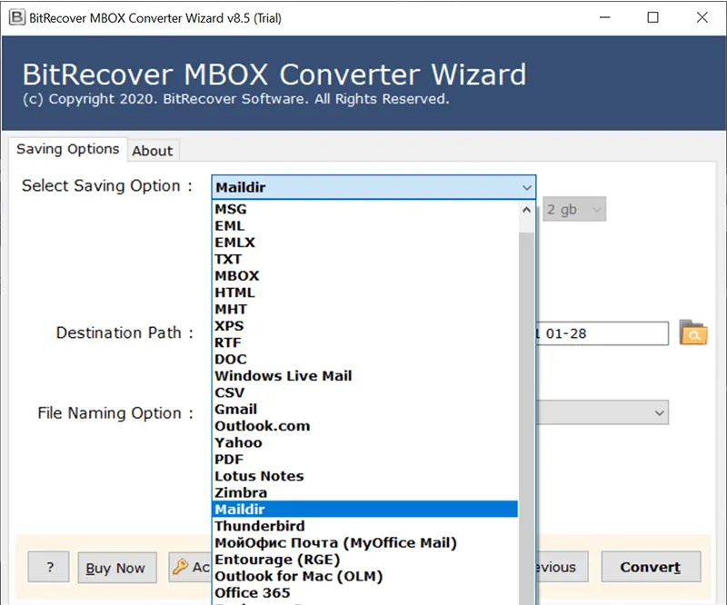 Χρησιμοποιήστε το bitrecoverMBOX σε μετατροπέα MailDirη οποία επιτρέπει τη μετατροπή του αρχείου Mbox που εξάγεται το Gmail σε μορφή MailDir.