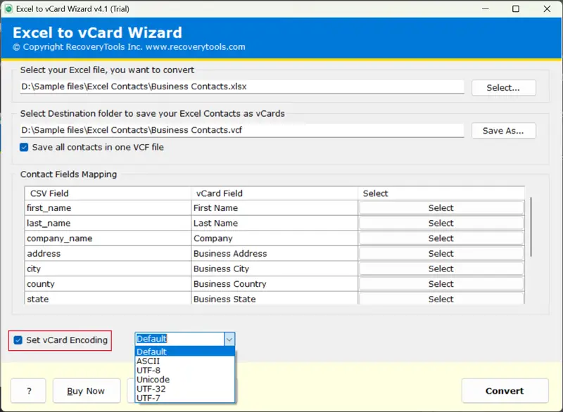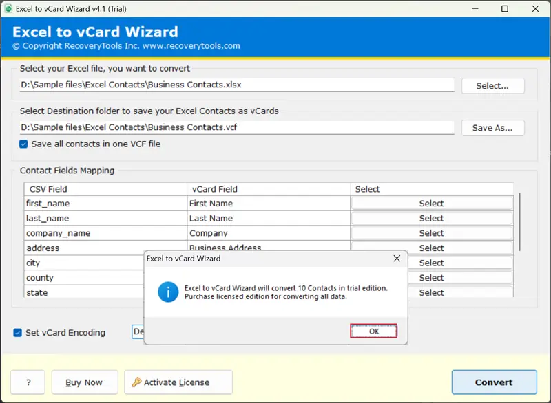 - Αυτό το εργαλείο επιτρέπει στους χρήστες να μετατρέψουν δεδομένα επαφών από το Excel σε τυπική μορφή και να διαχειρίζονται όλες τις λίστες σε ένα μόνο αρχείο VCF.