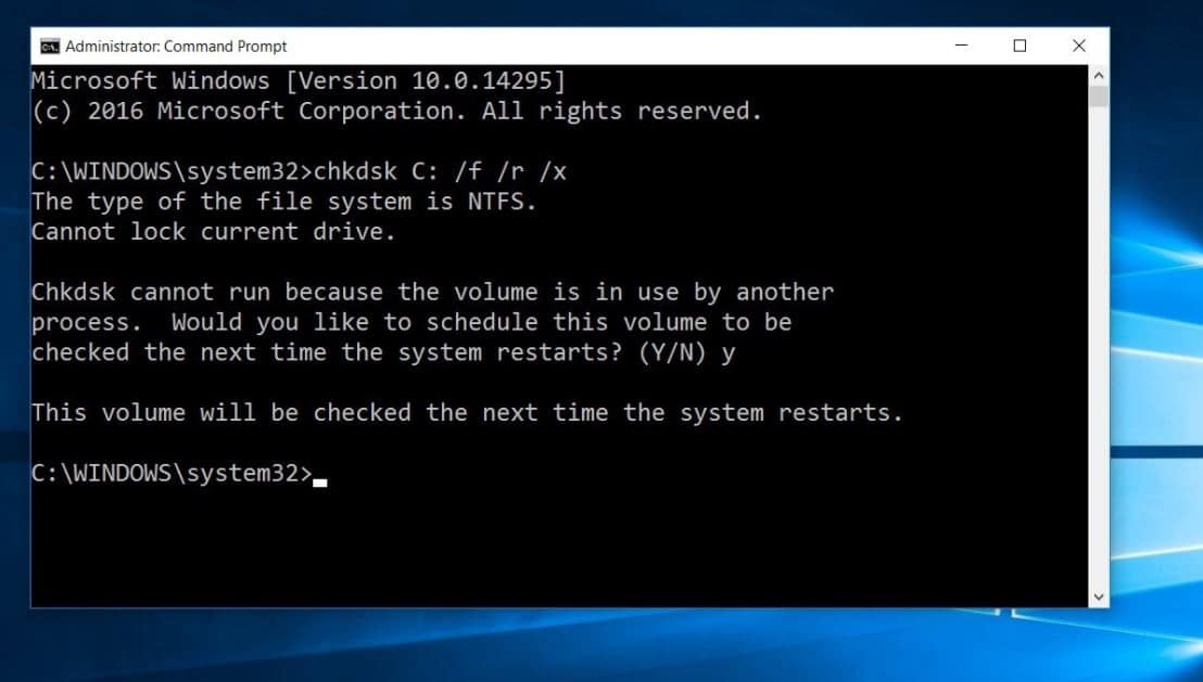 - Πληκτρολογήστε Y για επιβεβαίωση όταν σας ζητηθεί να προγραμματίσετε τη σάρωση στην επόμενη εκκίνηση.
