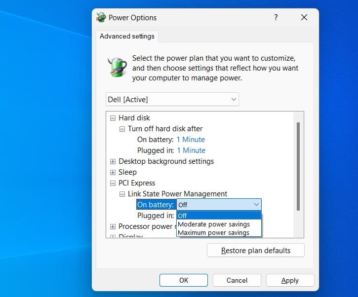 - Αναπτύξτε το PCI Express → Διαχείριση ισχύος κατάστασης σύνδεσης → Ορίστε σε απενεργοποίηση.