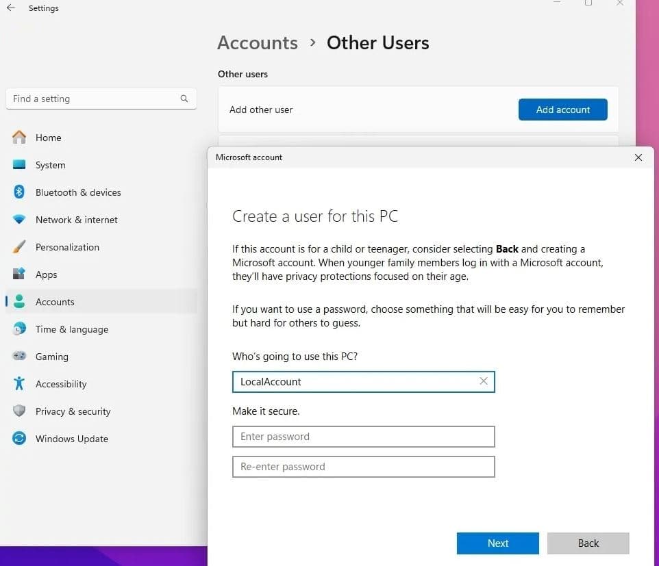 Εάν όλα τα άλλα αποτύχουν, η δημιουργία ενός νέου λογαριασμού χρήστη μπορεί να βοηθήσει, καθώς το πρόβλημα θα μπορούσε να συνδεθεί με συγκεκριμένες ρυθμίσεις για τον χρήστη. Ένα νέο προφίλ χρήστη διασφαλίζει ένα νέο σύνολο διαμορφώσεων συστήματος και ρυθμίσεων εφαρμογών, οι οποίες ενδέχεται να επιλύσουν το πρόβλημα εάν συνδέεται με κατεστραμμένα δεδομένα χρήστη.