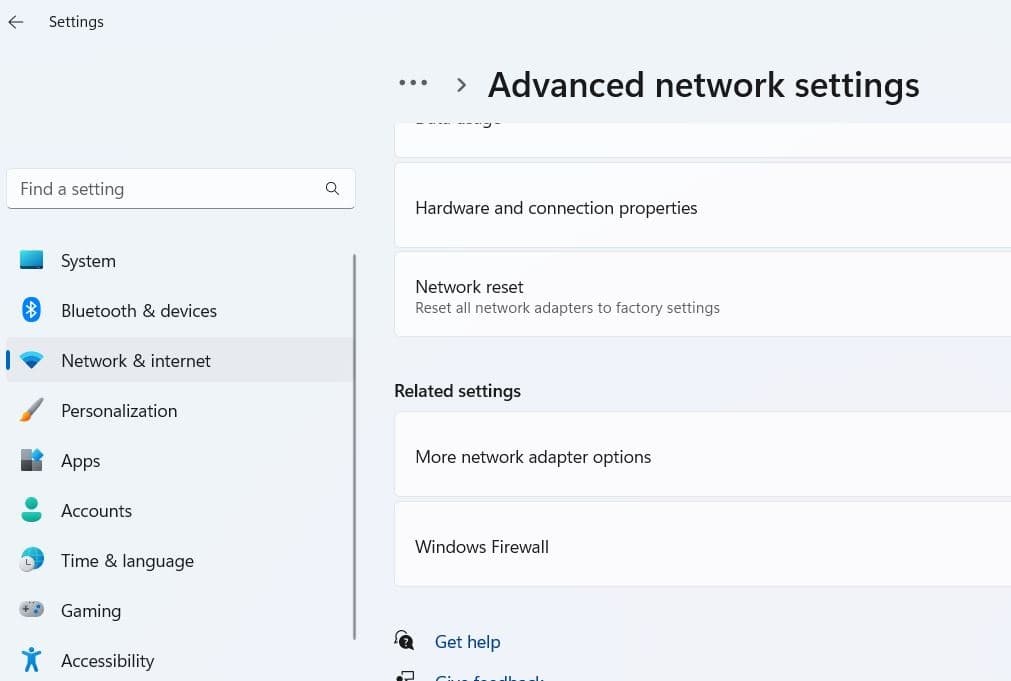 - Μεταβείτε στο «Δίκτυο και Διαδίκτυο» και στη συνέχεια Ρυθμίσεις δικτύου για προχωρημένους