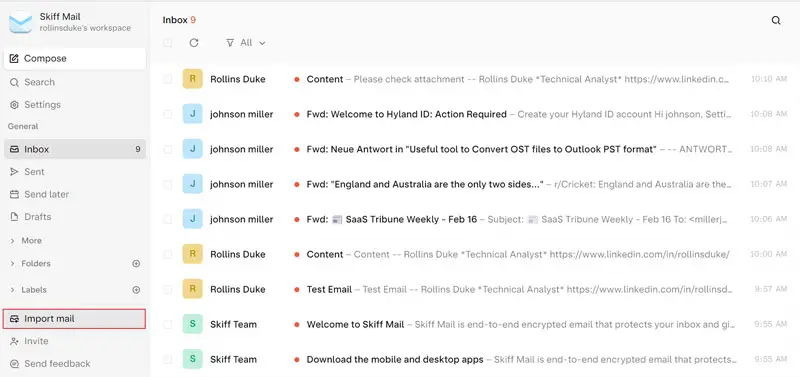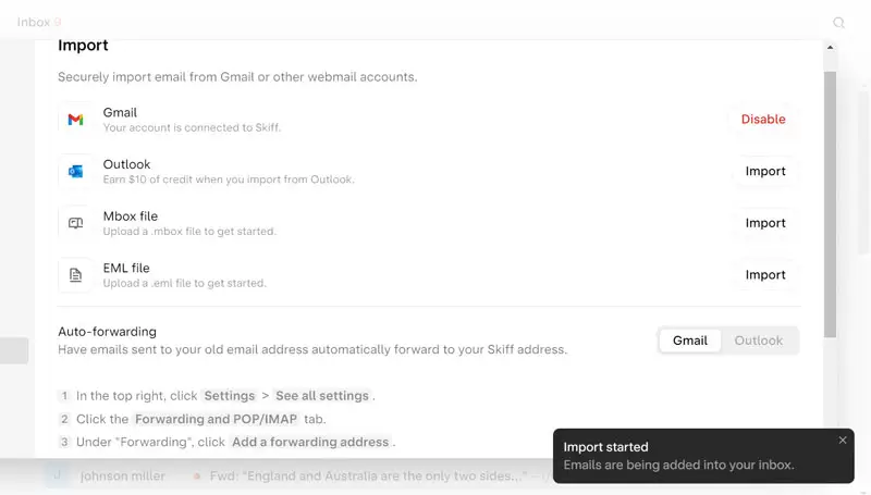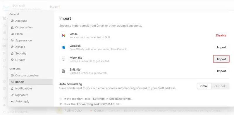 #2 φάση: εισαγωγή mbox στο skiff mail