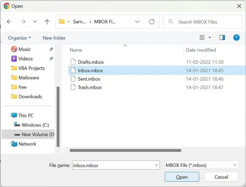 - Ξεφυλλίζωτο αρχείο mbox εξόδου από τον υπολογιστή σας και πατήστεΑνοιχτό.