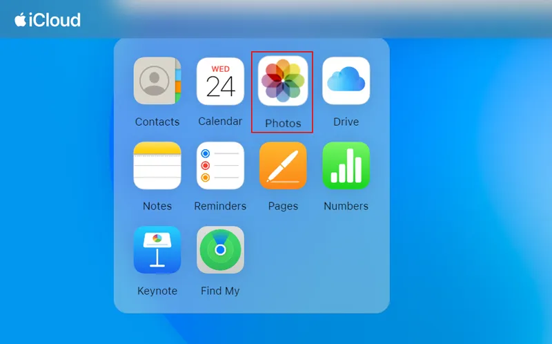 - Τότε, επιλέξτεΦωτογραφίεςαπό εφαρμογές iCloud.