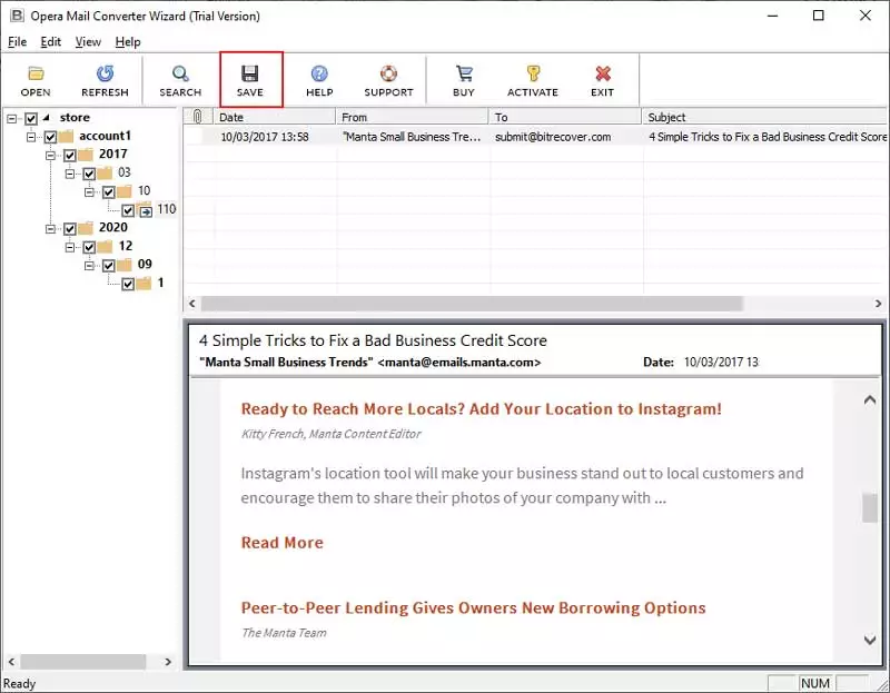 - Το Opera MBS στο Thunderbird Software επιτρέπει την εξαγωγή διευθύνσεων ηλεκτρονικού ταχυδρομείου από πεδία ηλεκτρονικού ταχυδρομείου, δηλαδή, CC, από το θέμα και το σώμα. Επιτρέπει την αποθήκευση διευθύνσεων ηλεκτρονικού ταχυδρομείου σε αρχεία CSV.
