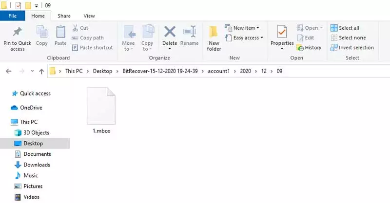 6 - Μετά από αυτό, ανοίξτε το φάκελο προορισμού και πάρτεπροκύπτον γραμματοκιβώτιο(.mbox) αρχεία.