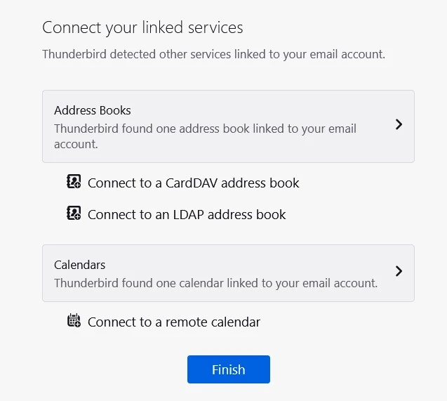 Το Thunderbird σας επιτρέπει να συνδεθείτε με τις υπηρεσίες ηλεκτρονικού ταχυδρομείου που βασίζονται σε σύννεφο, παρέχοντας στοιχεία IMAP και λογαριασμού.
