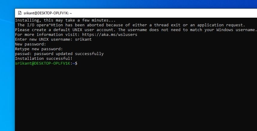 Η υπόλοιπη εγκατάσταση του Kali Linux συνεχίζεται από την εφαρμογή και τελικά σας ζητείται να δημιουργήσετε έναν νέο λογαριασμό χρήστη και έναν κωδικό πρόσβασης. Όταν έχετε δημιουργήσει τον λογαριασμό σας, σας παρουσιάζεται η γνωστή ρύθμιση γραμμής εντολών Linux.