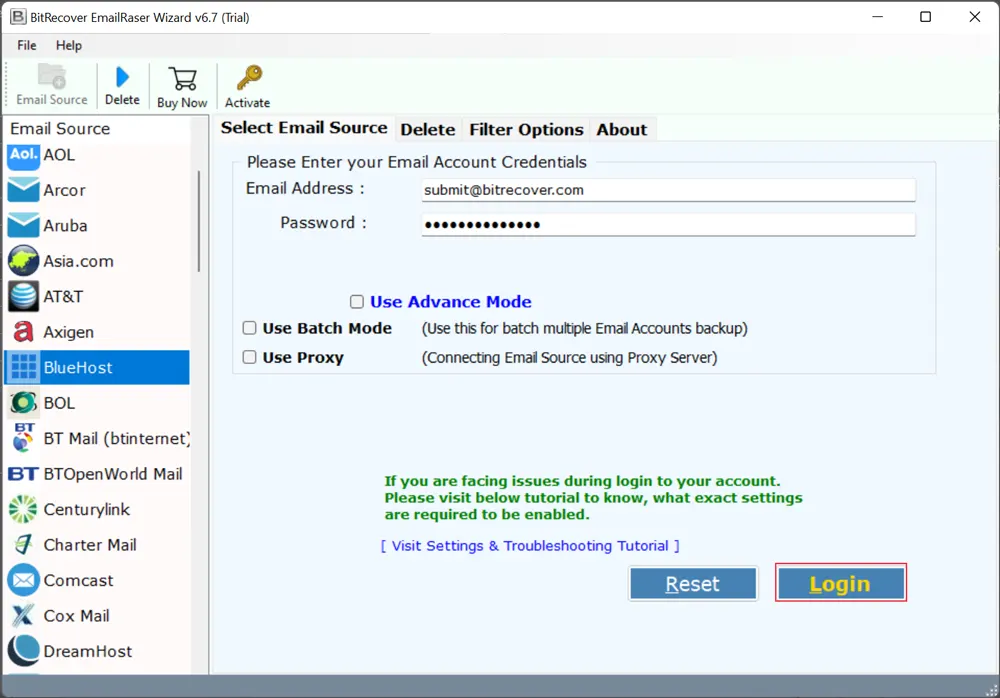 Πρόταση:Εάν νομίζετε ότι ο λογαριασμός ηλεκτρονικού ταχυδρομείου σας έχει κάποια κρίσιμα μηνύματα ηλεκτρονικού ταχυδρομείου με το μέλλον. Τότε μπορείτε να χρησιμοποιήσετεBlueHost Mail Backup Softwareη οποία εξουσιοδοτείται για την αποθήκευση ηλεκτρονικών μηνυμάτων BlueHost σε διάφορες συνήθεις επεκτάσεις αρχείων. Στη συνέχεια, μπορείτε να καταργήσετε με σιγουριά τα μηνύματα ηλεκτρονικού ταχυδρομείου από το bluehost.