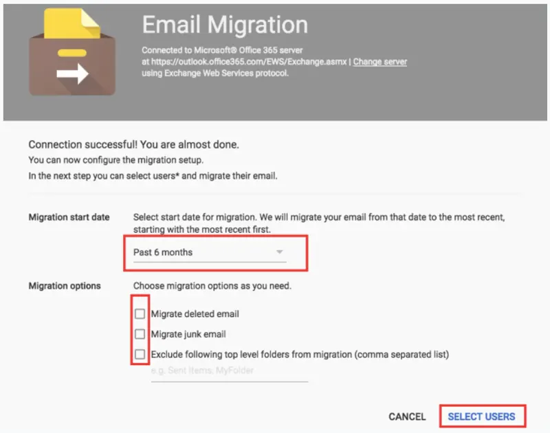 - Ελέγξτε τοΧρησιμοποιήστε τη λειτουργία παρτίδαςΠλαίσιο ελέγχου επιλογής για τη μετάβαση από την παρτίδα από το Office 365 σε G Suite.