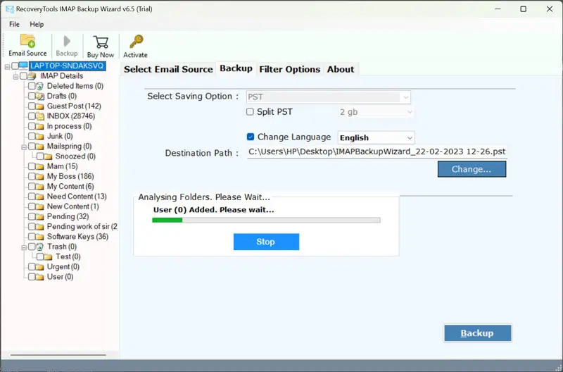 - Επόμενο βήμα Το λογισμικό θα χειριστεί τον εαυτό του, όπου θα αναλύσεικαι προσθέστε τους φακέλους ηλεκτρονικού ταχυδρομείου IntermediaΑφού συνδεθείτε.