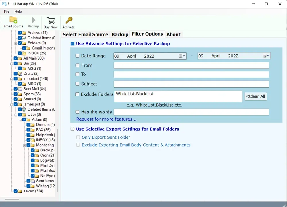 - Το εργαλείο παρέχει πολλαπλές προχωρημένες επιλογές φίλτρου για τη μετανάστευση επιλεκτικών δεδομένων από το χώρο εργασίας του Google. Μπορείτε να τα ορίσετε σύμφωνα με την απαίτησή σας.