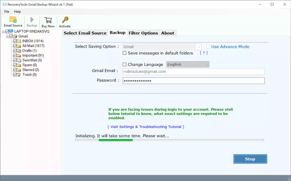 Κατεβάστε τη δωρεάν δοκιμή του λογισμικού στο μηχάνημά σας. Θα σας βοηθήσει να ελέγξετε τη λειτουργικότητα του εργαλείου. Επίσης, θα μπορείτε να μετακινήσετε τα πρώτα στοιχεία ηλεκτρονικού ταχυδρομείου σε έναν άλλο λογαριασμό Gmail. Επιπλέον, για απεριόριστη μετανάστευση, αγοράστε τα κλειδιά άδειας.