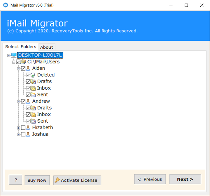 Στη συνέχεια, επιλέξτε τους επιθυμητούς φακέλους ηλεκτρονικού ταχυδρομείου από το GUI που θέλετε να μετακινηθείτε από το Imail στο λογαριασμό Gmail.