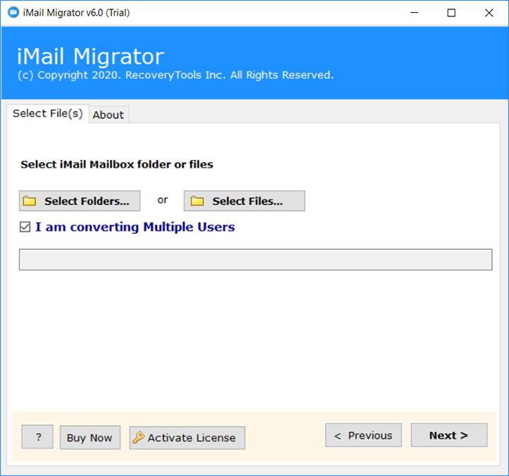 1- διπλοί τρόποι εισαγωγής δεδομένων IMAIL-Με το Ipswitch Imail στο εργαλείο μετανάστευσης Gmail, οι χρήστες μπορούν να εισαγάγουν τα δεδομένα του IMAIL με δύο τρόπους - επιλέξτε αρχεία / φακέλους. Χρησιμοποιώντας αυτές τις επιλογές, μπορείτε να εισαγάγετε μεμονωμένο αρχείο/ φακέλους ή πολλαπλά αρχεία/ φακέλους του Imail Server σε GUI για τη μετανάστευση ηλεκτρονικού ταχυδρομείου.