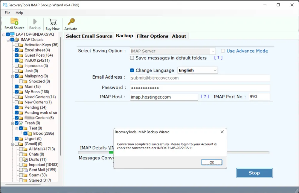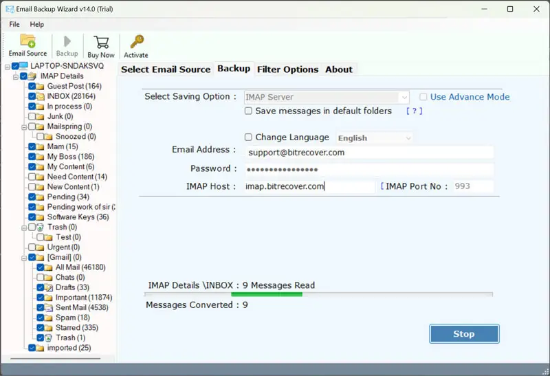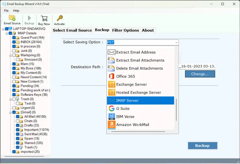 - Τρέχει τοπροτεινόμενο λογισμικόστον υπολογιστή σας και επιλέξτεΔιακομιστής IMAPΩς πηγή email.