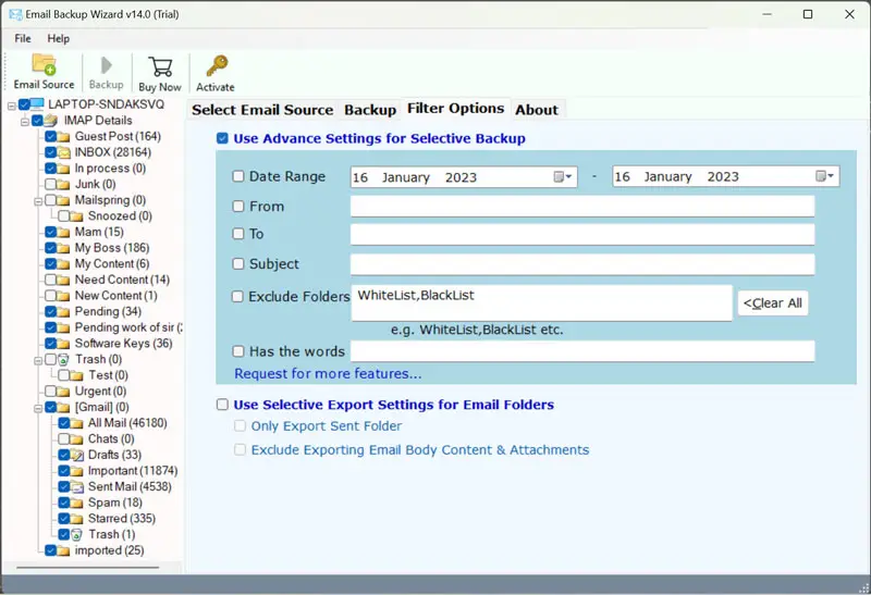 Α: Ναι,Χρησιμοποιήστε την επιλογή Exclude Folder και εισαγάγετε το όνομα των περιττών φακέλων. Αυτή η επιλογή είναι διαθέσιμη κάτω από τις επιλογές φίλτρου.
