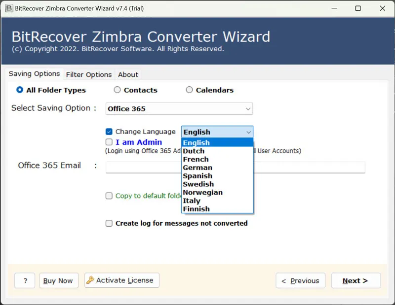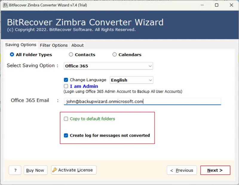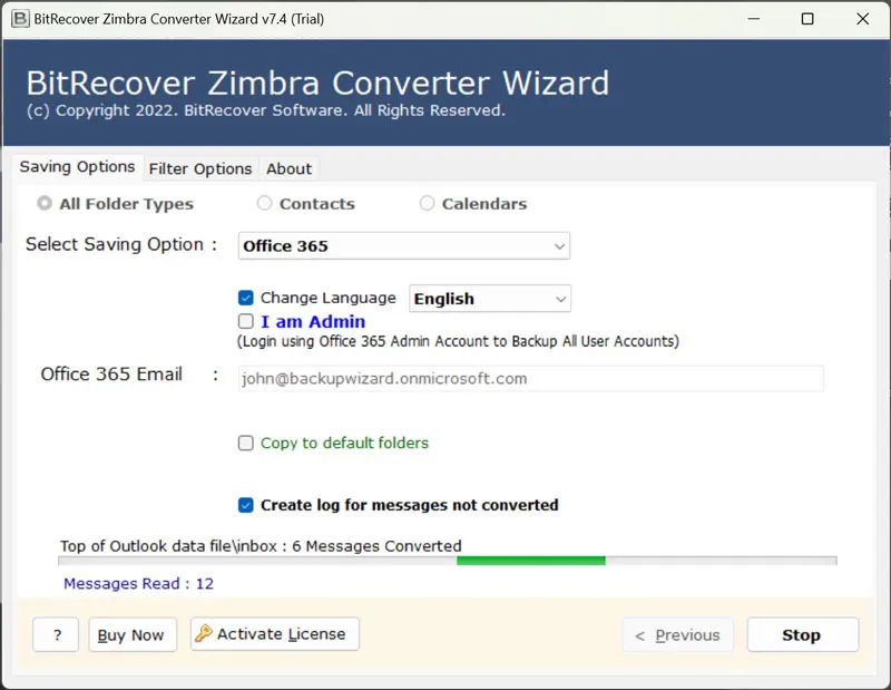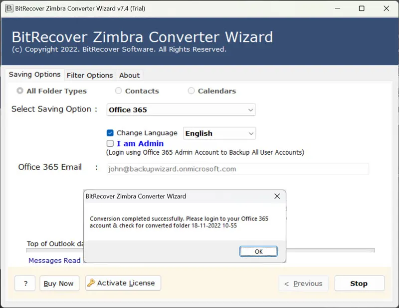 Για να καταλάβετε πώς λειτουργεί το λογισμικό, σας προτείνουμε να κάνετε πρώτα μια δωρεάν δοκιμή τουΕπίδειξη. Είναι διαθέσιμο χωρίς κόστος και σας δίνει την εγκατάστασηΜετατροπή 25 αντικειμένωναπό το φάκελο Zimbra σε μια υποστηριζόμενη μορφή. Για να κάνετε απεριόριστη μετανάστευση διακομιστή Zimbra Mail στο Office 365, αγοράστε γρήγορα τα κλειδιά άδειας.