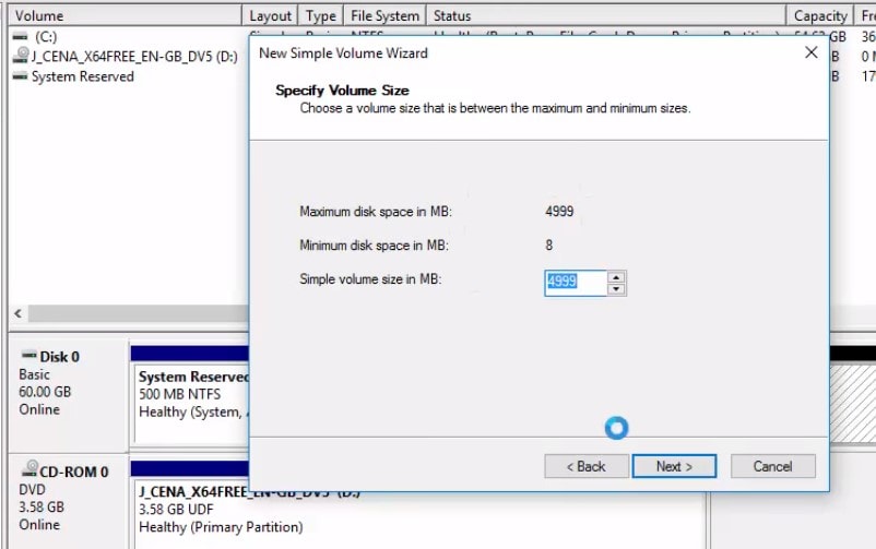 - Κάντε δεξί κλικ στον μη κατανεμημένο χώρο και επιλέξτεΝέος απλός όγκος.