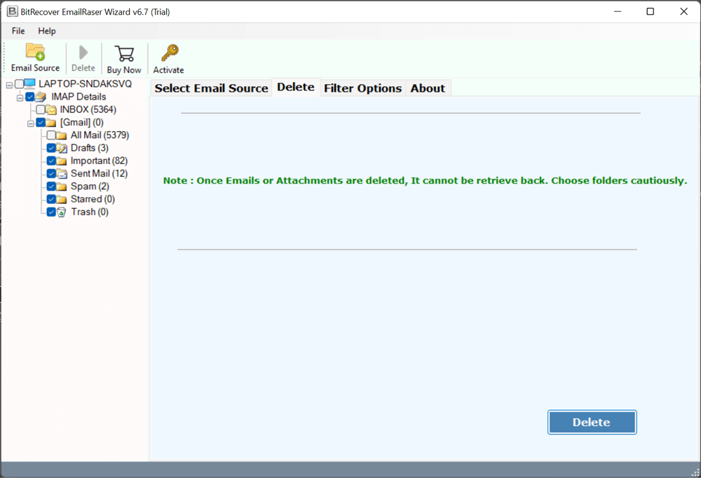 - Τώρα κάντε κλικ στοΔιαγράφωκουμπί για να ξεκινήσετε την κατάργηση των ηλεκτρονικών μηνυμάτων Yahoo μόνιμα.