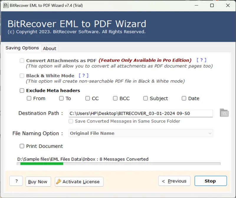 Αν ψάχνετε να αξιολογήσετε την απόδοση του εργαλείου, τότε πηγαίνετε για την ελεύθερη έκδοση demo. Επιτρέπει την εκτύπωση των πρώτων 25 αρχείων EML χωρίς κόστος. Για απεριόριστη μετατροπή, αγοράστε την άδεια εκδοχής του εργαλείου. Το εργαλείο είναι κατάλληλο τόσο για τους χρήστες των Windows όσο και για τους χρήστες Mac OS.