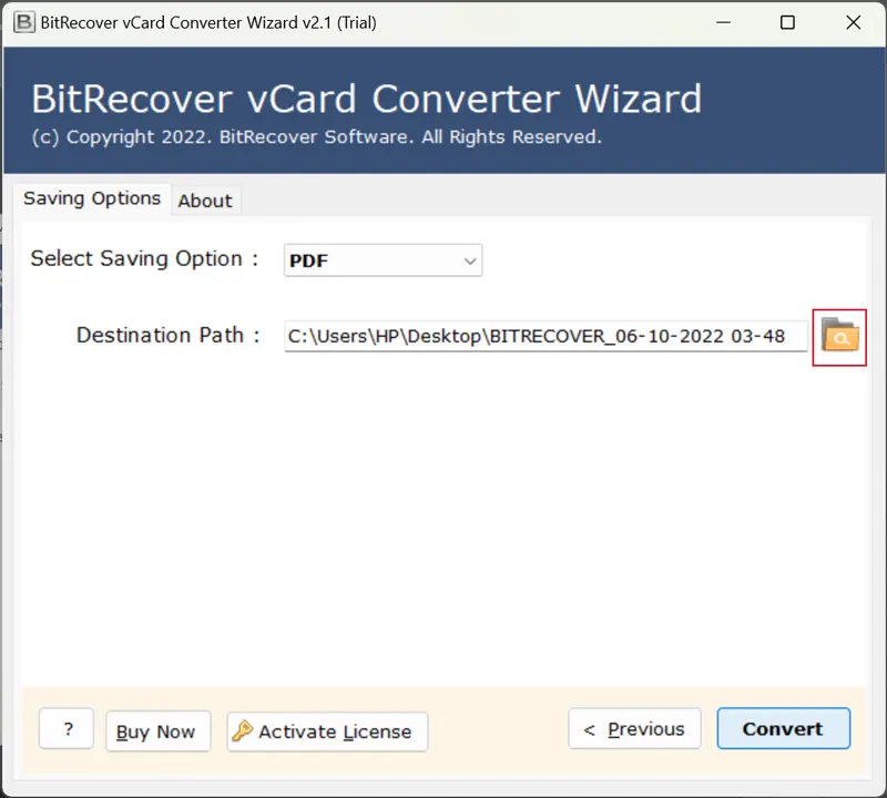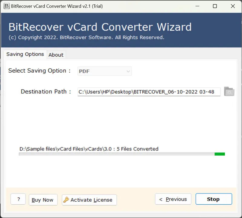 Η λύση είναι επίσης διαθέσιμη για δωρεάν χρήστες δοκιμών. Οι χρήστες μπορούν εύκολα να γνωρίσουν για αυτό το εργαλείο χρησιμοποιώντας την έκδοση demo. Οι χρήστες μπορούν εύκολα να εκτυπώσουν 5 επαφές ανά αρχείο VCF χρησιμοποιώντας την έκδοση demo. Για περισσότερες λειτουργίες, οι χρήστες πρέπει να αγοράσουν την έκδοση άδειας της αίτησης.