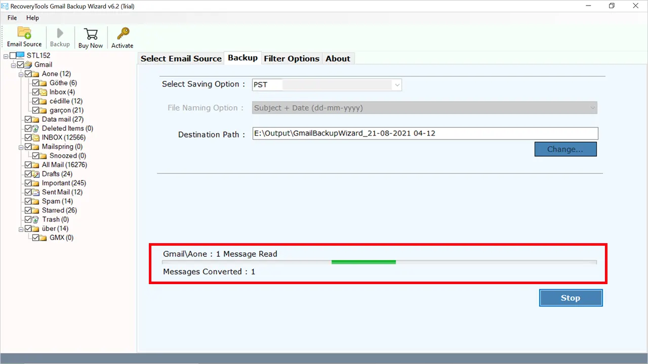 - Μετά από αυτό, όλα τα μηνύματα ηλεκτρονικού ταχυδρομείου Gmail θα αρχίσουν να λαμβάνονται σε μορφή Zip σε τοπικό επίπεδο.