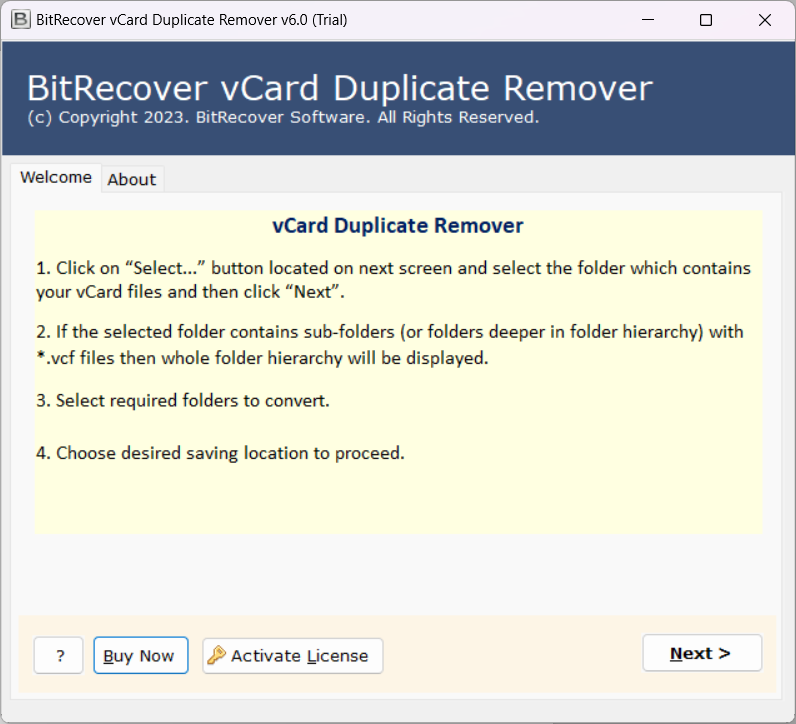 - Προχωρήστε κάνοντας κλικ στοΕπόμενοςκουμπί και να αποφασίσετε τη θέση για τα αρχεία VCF που έχουν αφαιρεθεί αντίγραφα χρησιμοποιώντας το εικονίδιο φακέλου κάτωΔιαδρομή προορισμού.