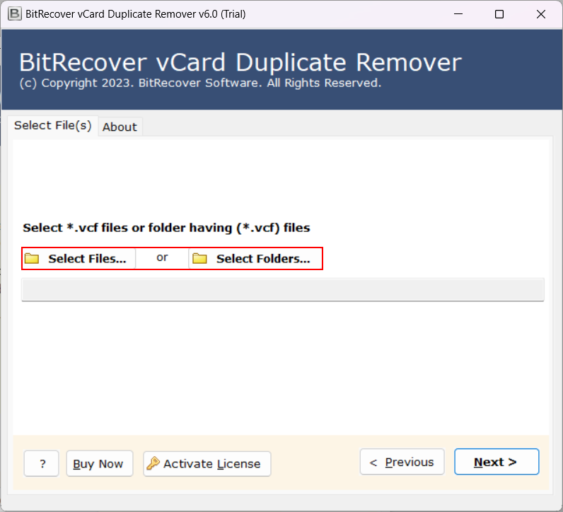 - Στη συνέχεια, κάντε κλικΕπιλέξτε Αρχεία ή Επιλογή φακέλωνγια να προσθέσετε ολόκληρη τη συλλογή αρχείων VCF και κάντε κλικ στοΕπόμενοςκουμπί.