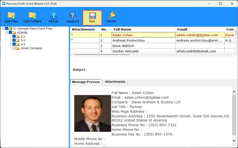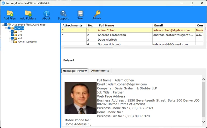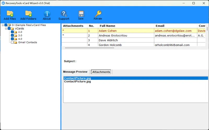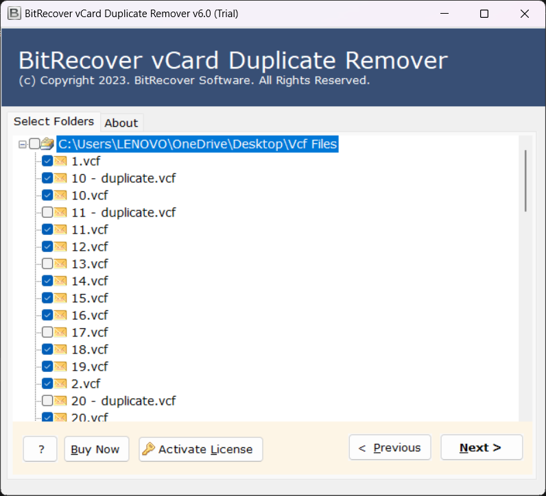 - Επιλέξτε τα αρχεία VCFαπό τον πίνακα προβολής λογισμικού στην αριστερή πλευρά.
