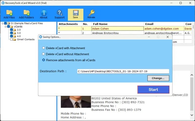 - ΑλλαγήΣτη συνέχεια, ενεργοποιήστε μια επιλογή κατάργησης συνημμένων από την vCard όπως φαίνεται.Κάντε κλικ στο