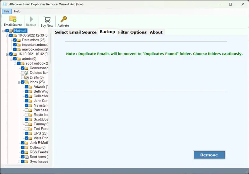- Επιλέξτε τοΦάκελοι emailγια τη διαδικασία απο-duplication.