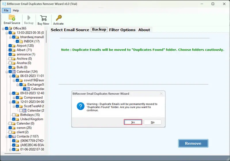 Ans: Ναι!Μπορείτε να καταργήσετε διπλά μηνύματα ηλεκτρονικού ταχυδρομείου από το Office 365 Primary, το Shared Mailbox και άλλους λογαριασμούς ηλεκτρονικού ταχυδρομείου χρησιμοποιώντας αυτό το εργαλείο deduplication πολλαπλών πλατφορμών.