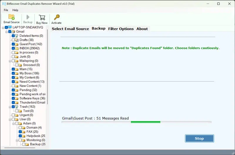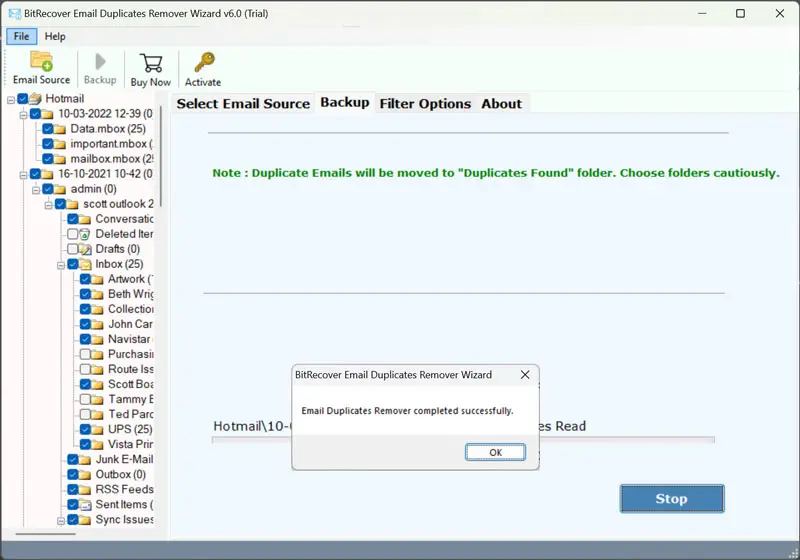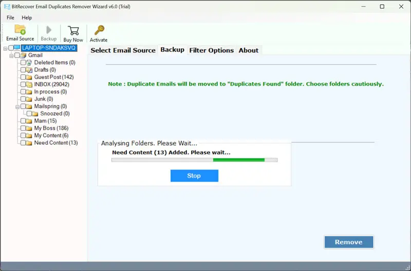 - Περιμένετε να είναι τα δεδομέναφορτώθηκε στον πίνακα λογισμικούαπό το διπλό αφαίρεσης Zimbra.