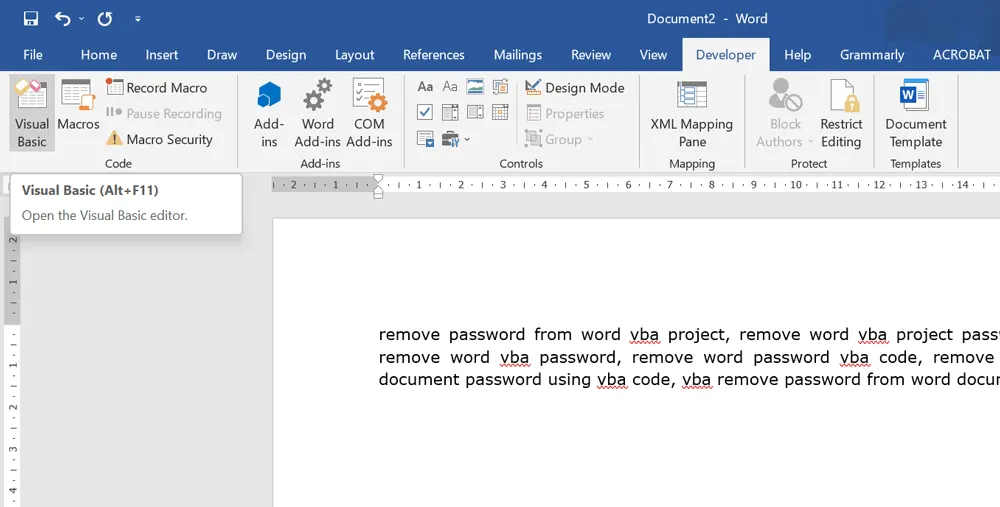 Λύση #1 – Καταργήστε τον κωδικό πρόσβασης εγγράφου του Word χρησιμοποιώντας κώδικα VBA