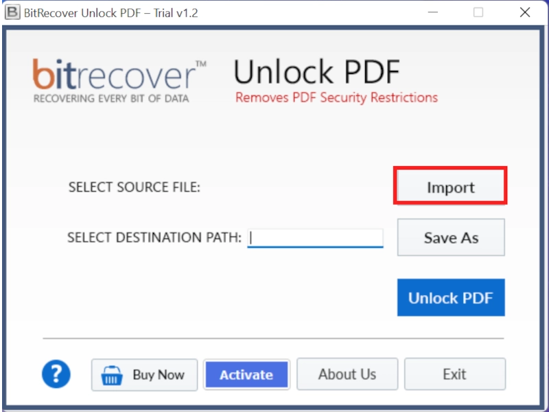 - Πρώτα,Λήψη και εγκατάστασηΤο εργαλείο για την κατάργηση του άγνωστου κωδικού πρόσβασης από το PDF και επιλέξτε την επιλογή εισαγωγής.