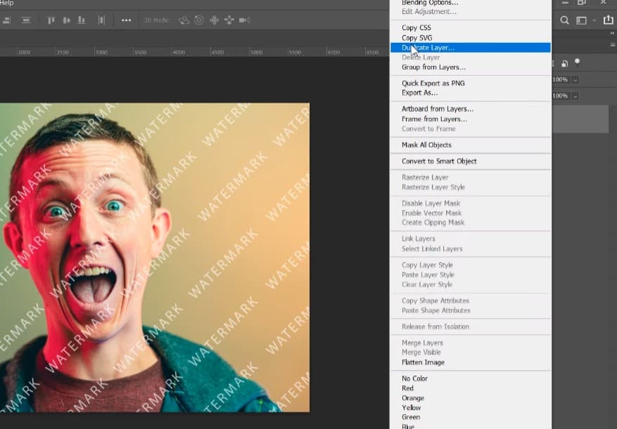 - Στον πίνακα Layers κάντε δεξί κλικ στο στρώμα "φόντο" και επιλέξτε "Διπλότυπο στρώμα".