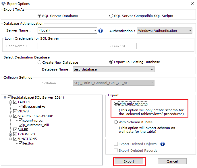 - Εξαγωγή δεδομένων "Μόνο με Σχήμα"ή "Σχήμα με δεδομένα” για επιδιόρθωση κατεστραμμένου αρχείου MDF.