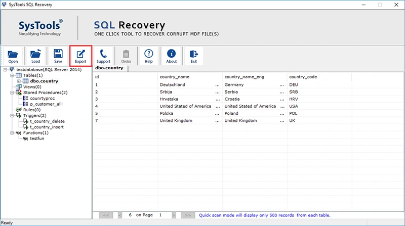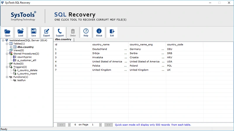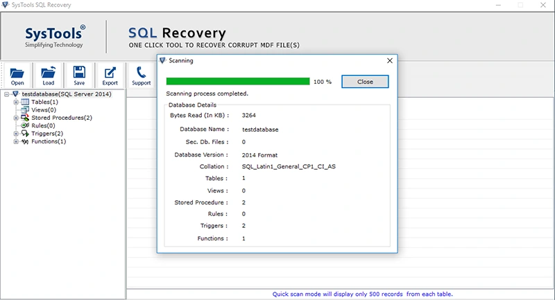 - Οκατεστραμμένη διαδικασία σάρωσης SQLέχει ολοκληρωθεί, δείτε τώρα τις λεπτομέρειες της βάσης δεδομένων στον πίνακα λογισμικού.