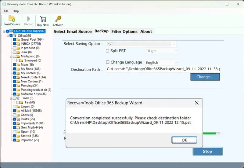 Pro Steps για τη λήψη ηλεκτρονικού ταχυδρομείου Office 365 σε σκληρό δίσκο