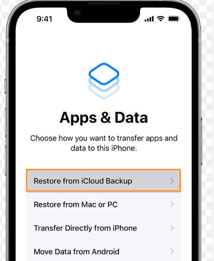 - Βήμα 2:Επιλέξτε "Επαναφορά από το iCloud Backup" από όλες τις άλλες επιλογές.