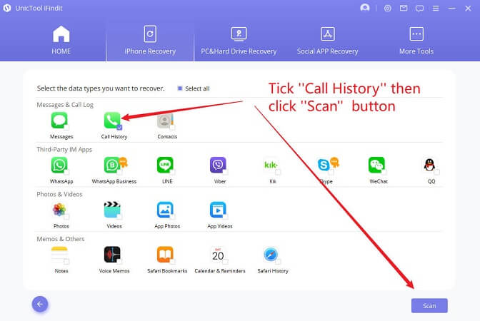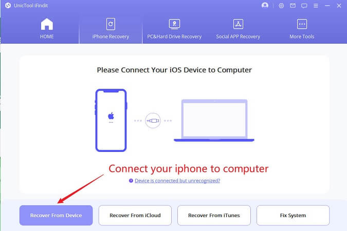 Το εργαλείο ανάκτησης iOS all-in-one από το Unictool είναι το Ifindit μπορεί να χρησιμοποιηθεί για την προβολή και την ανάκτηση του ιστορικού κλήσεων iPhone. Στα παρακάτω βήματα, εξήγησα πώς να χρησιμοποιήσω το Ifindit για την αποκατάσταση του ιστορικού διαγραμμένης κλήσης: