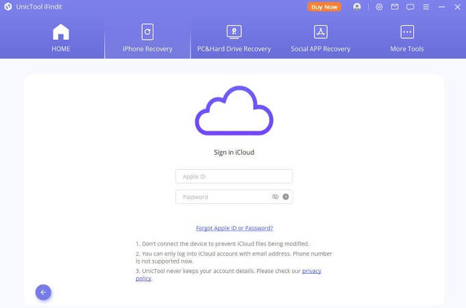 Το IfIndit μπορεί επίσης να ανακτήσει το χαμένο ιστορικό κλήσης σας στο iPhone μέσω του iCloud. Εάν το τηλέφωνό σας δεν είναι μαζί σας, μπορείτε να συνδεθείτε στο λογαριασμό σας στο iCloud για να ανακτήσετε το ιστορικό κλήσης του iPhone εάν έχετε αντίγραφο ασφαλείας. Εάν ακόμα δεν μπορείτε να βρείτε τα χαμένα δεδομένα σας μέσω του λογαριασμού σας στο iCloud στο τηλέφωνό σας, μπορείτε να χρησιμοποιήσετε τη λειτουργία backup iCloud για να αναζητήσετε περισσότερα χαμένα δεδομένα.
