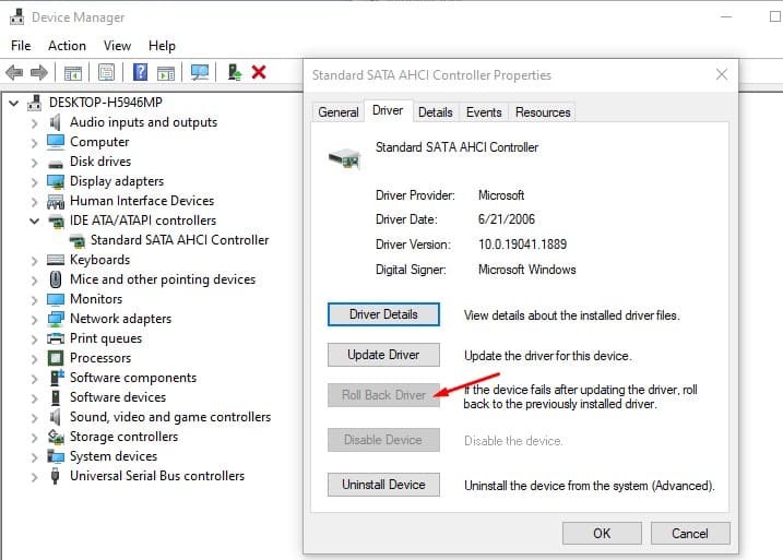 Εάν το σφάλμα ξεκίνησε μετά την ενημέρωση του προγράμματος οδήγησης, σκεφτείτε να επιστρέψετε σε μια προηγούμενη έκδοση.