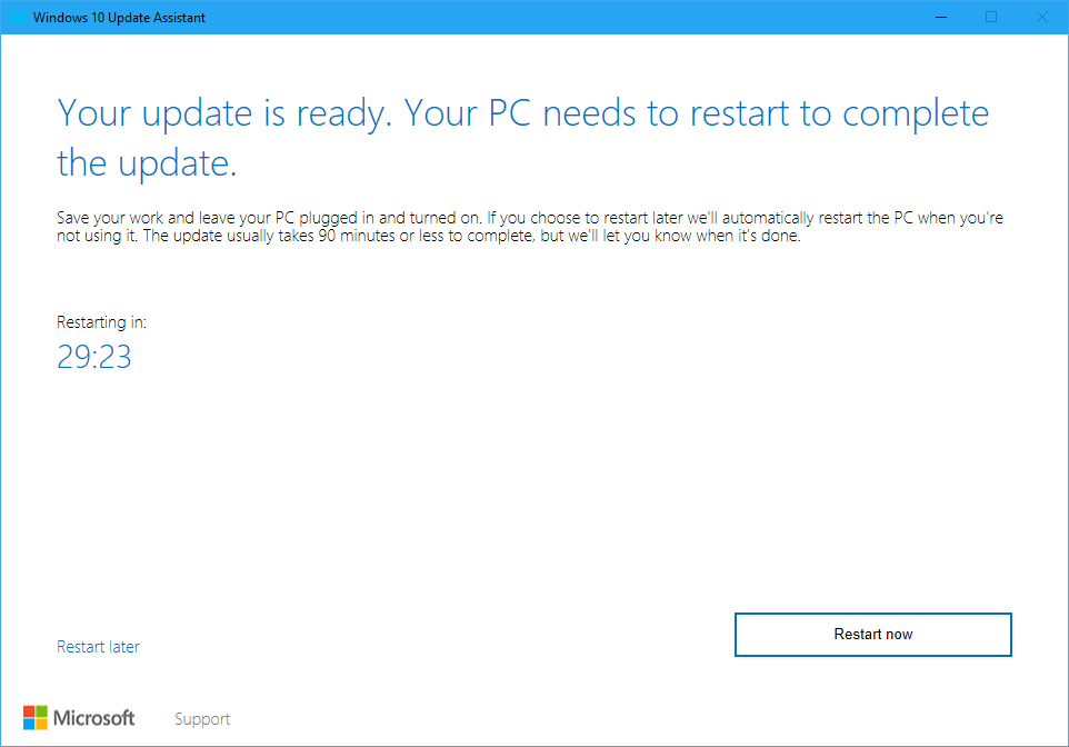 Καθώς η λήψη εξελίσσεται, ο βοηθός ενημέρωσης θα σας ενημερώσει για την πρόοδό του, η διαδικασία λήψης θα διαρκέσει λίγο χρόνο για να ολοκληρωθεί. Περιμένετε μέχρι να ολοκληρωθεί το 100%. Μόλις ολοκληρωθεί η λήψη, ο βοηθός ενημέρωσης θα επαληθεύσει τη λήψη για να εξασφαλίσει μια επιτυχημένη εγκατάσταση. Τώρα θα δείτε μια οθόνη όπως η παρακάτω εικόνα Η ενημέρωσή σας είναι έτοιμη. Ο υπολογιστής σας πρέπει να επανεκκινήσει για να ολοκληρώσει την ενημέρωση.