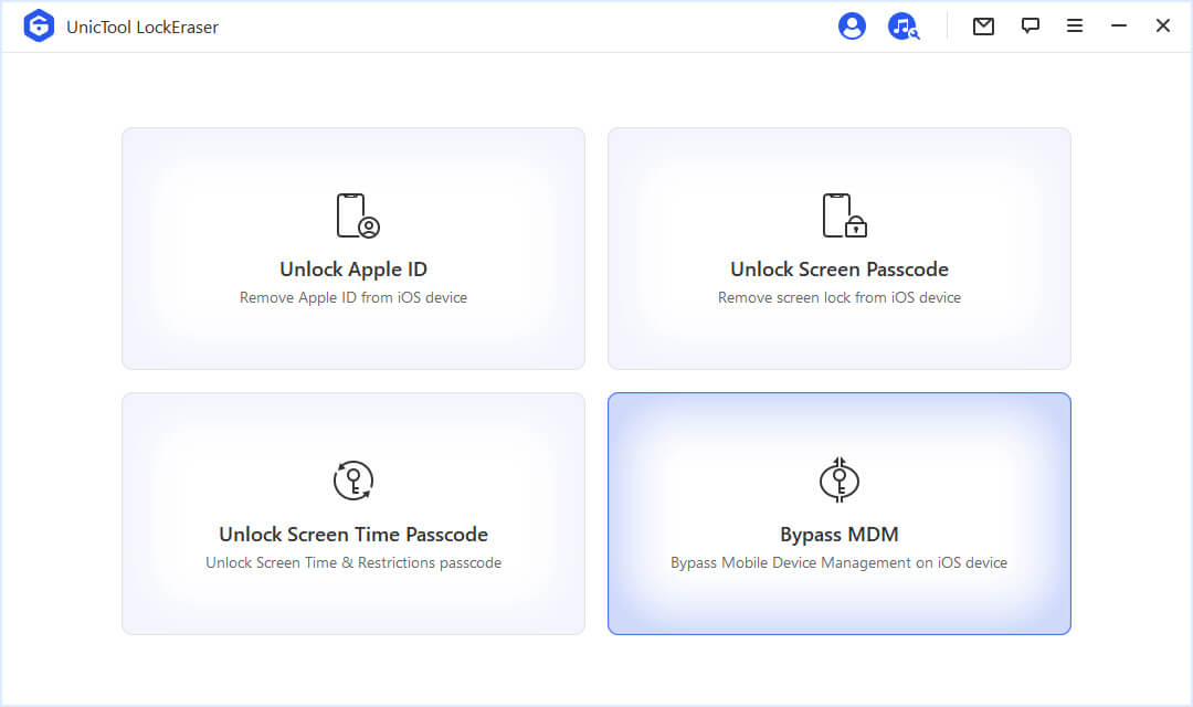Πολλά εργαλεία που αναπτύσσονται στην αγορά αφαιρέσουν ή παράκαναν κλειδαριές μήλων.Χαλαρήείναι επίσης ένα εργαλείο που αναπτύχθηκε από το Unictool για να αφαιρέσει διάφορες κλειδαριές στο σύστημα της Apple. Σας βοηθά να παρακάμψετε οποιαδήποτε κλειδαριά σε συσκευές iOS. Ομοίως, μπορεί να αφαιρέσει την κλειδαριά MDM με απλό κλικ. Είναι μια ασφαλέστερη επιλογή για χρήση λόγω της αξιοπιστίας της.
