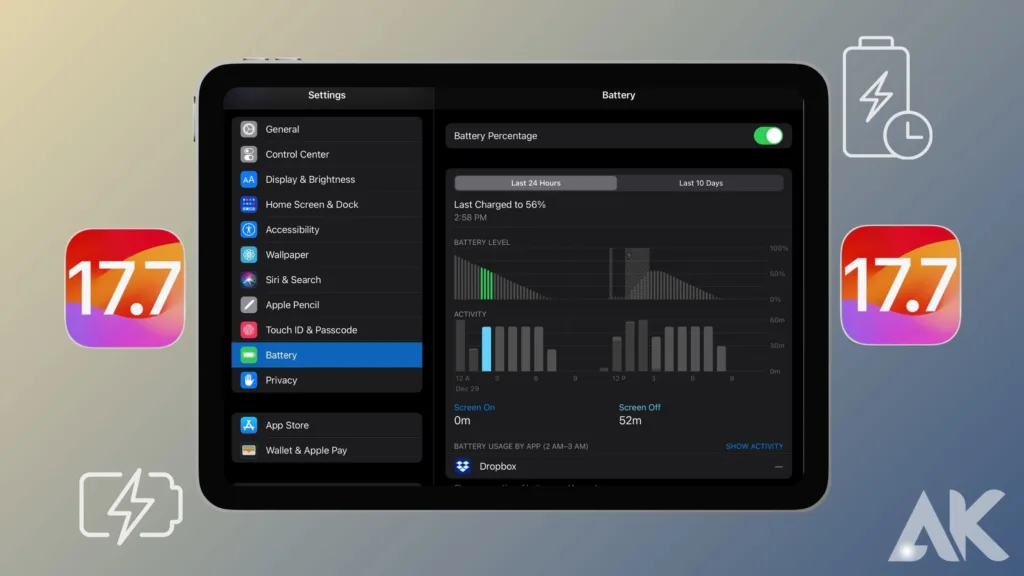 Η διασφάλιση ότι το iPad σας έχει αρκετή διάρκεια ζωής της μπαταρίας είναι κρίσιμη πριν επιχειρήσετε την αναβάθμιση των απαιτήσεων του iPados 17.7. Η Apple συνιστά να χρεωθεί η συσκευή σας τουλάχιστον ** 50%** ή να παραμείνει συνδεδεμένη σε πηγή ενέργειας σε όλη τη διαδικασία ενημέρωσης. Αυτό οφείλεται στο γεγονός ότι η εγκατάσταση μιας ενημέρωσης λογισμικού μπορεί να είναι εντατική ισχύς και οι διακοπές λόγω χαμηλής μπαταρίας μπορούν να οδηγήσουν σε ελλιπείς εγκαταστάσεις, πιθανή απώλεια δεδομένων ή ακόμη και να απαιτούν πλήρη επαναφορά συσκευών.
