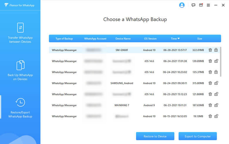 Το Itransor είναι ένα ολοκληρωμένο εργαλείο λογισμικού που αναπτύχθηκε απόimyfoneΑυτό έχει σχεδιαστεί ειδικά για τη διαχείριση δεδομένων WhatsApp. Με το Itransor, μπορείτε να δημιουργήσετε αντίγραφα ασφαλείας των δεδομένων σας WhatsApp, να τα επαναφέρετε σε μια νέα συσκευή και να το μεταφέρετε μεταξύ των συσκευών iOS και Android. Το εργαλείο είναι διαθέσιμο τόσο για τις πλατφόρμες Windows όσο και για Mac και είναι εύκολο στη χρήση, ακόμη και για όσους δεν είναι τεχνικά καταλαβαίνω.