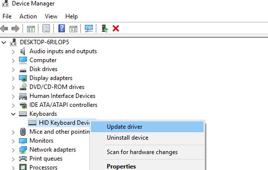 Εάν η εφαρμογή των παραπάνω λύσεων δεν διορθώνει το πρόβλημα, πρέπει να προσπαθήσετε να ενημερώσετε ή να επανεγκαταστήσετε το πρόγραμμα οδήγησης πληκτρολογίου και ποντικιού που καθορίζει κυρίως το πρόβλημα. Μπορείτε να ενημερώσετε αυτόματα το ποντίκι και το πληκτρολόγιό σας από το διαχειριστή συσκευών. Μεταβείτε στο μενού έναρξης, αναζητήστεΔιαχειριστής συσκευώνκαι ανοίξτε το. ΔιαστέλλωΠληκτρολόγιακατηγορία. Κάντε δεξί κλικ στο εγκατεστημένο πρόγραμμα οδήγησης πληκτρολογίου και, στη συνέχεια, επιλέξτεΕνημέρωση του προγράμματος οδήγησης. Και ακολουθήστε τις οδηγίες στην οθόνη.